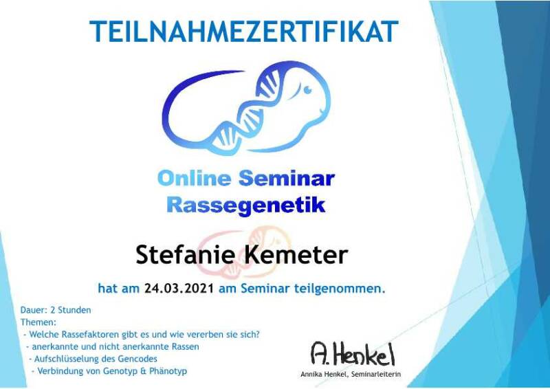 Meine Zucht wurde zuletzt am 14.06.2021 amtstierärztlich kontrolliert und bescheinigt.